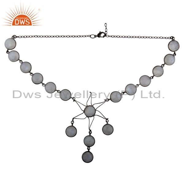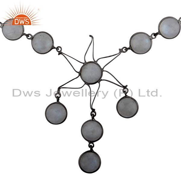 Exquisite Black Rhodium Plated Sun Face Rainbow Moonstone Necklace Handmade Jewe