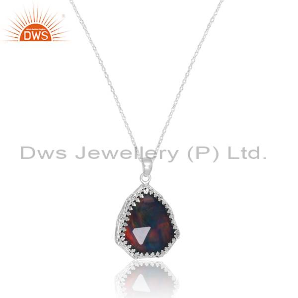 Fancy Aurora Opal Red Green Checker Necklace For Women
