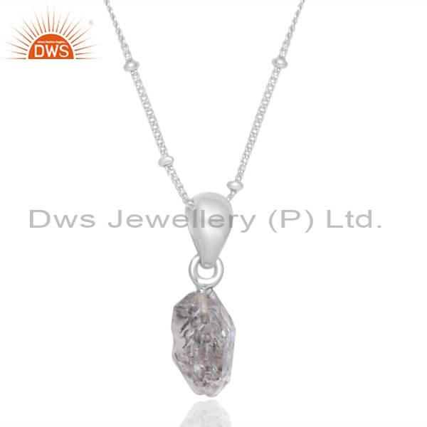 Fancy Unshaped Herkimer Diamond Necklace In Silver Metal