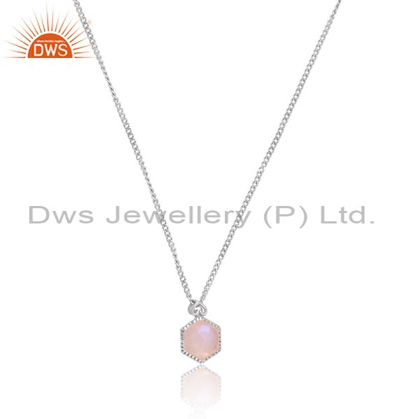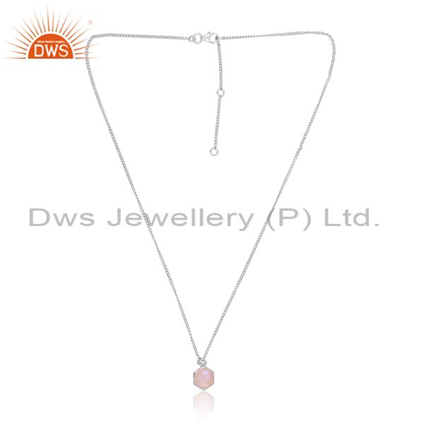 Fine Silver Rainbow Moon Stone Set Hexagon Pendant And Chain
