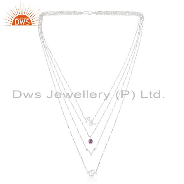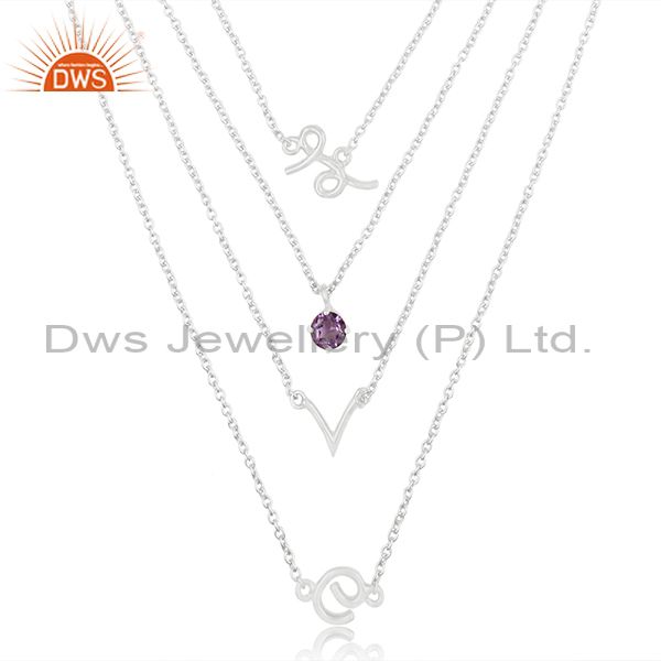 Fine Sterling Silver Love Initial Amethyst Gemstone Chain Necklace Wholesale