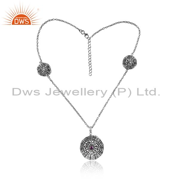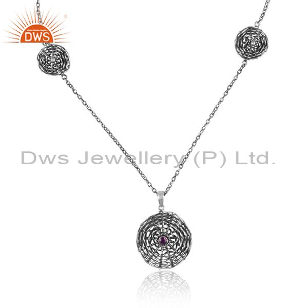 Floral Woven Charms Amethyst Set Oxidized Silver Necklace
