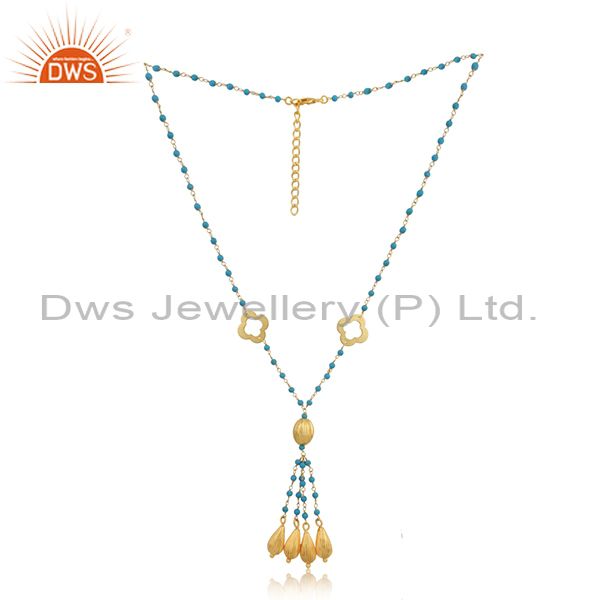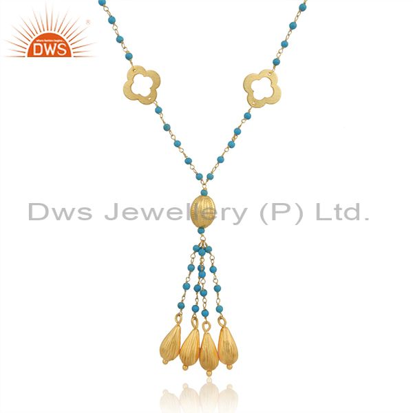 Flower Gold Plated SIlver Turquoise Gemstone Beaded Necklace Jewelry