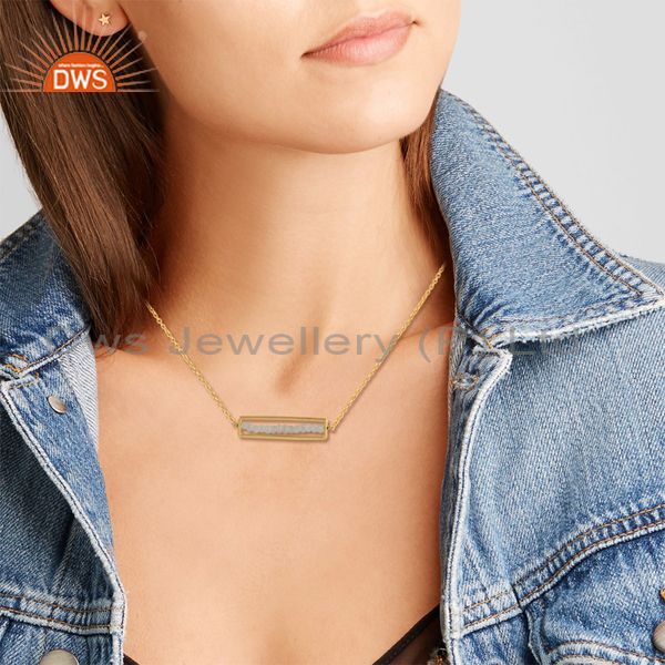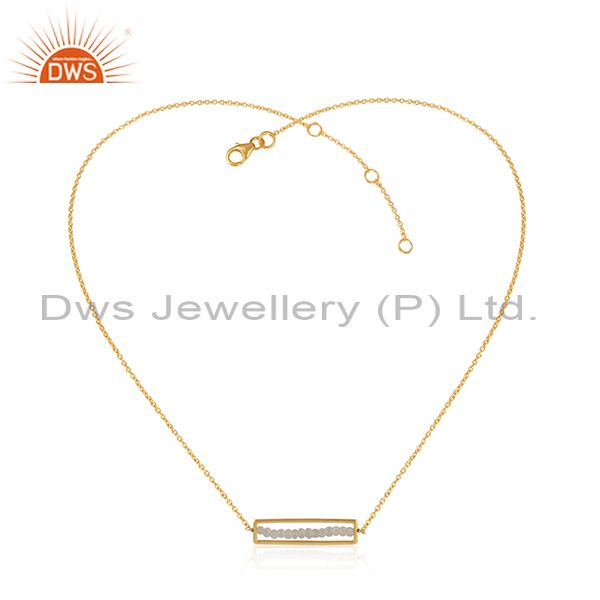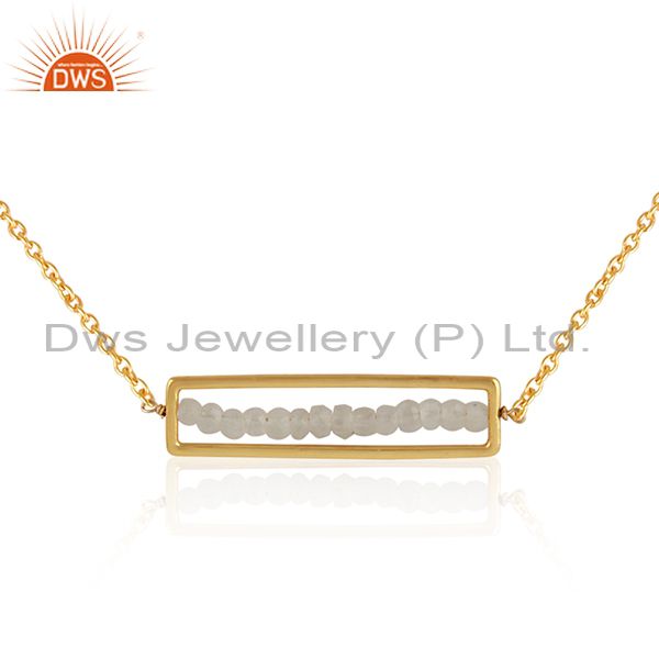 Frame Design Gold Plated Silver Rainbow Moonstone Beaded Necklace