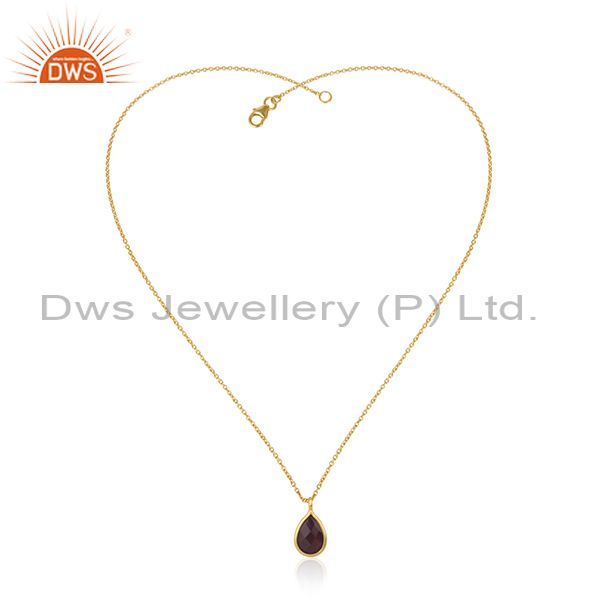 Garnet Gemstone 925 Silver Yellow Gold Plated Chain Pendant Manufacturer India