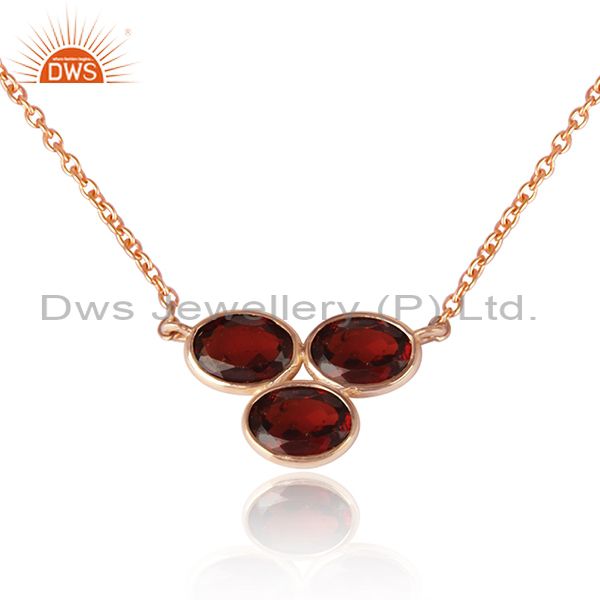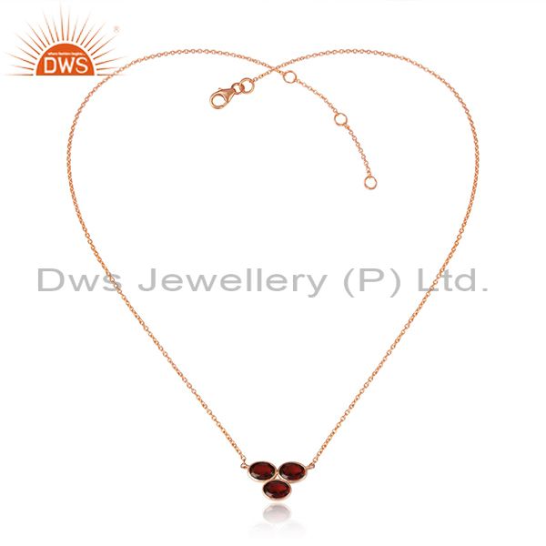 Garnet Gemstone Rose Gold Plated Designer Silver Pendant Necklace