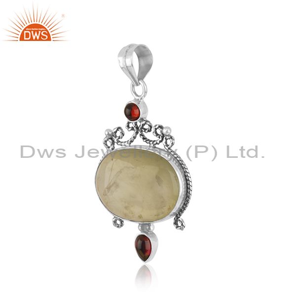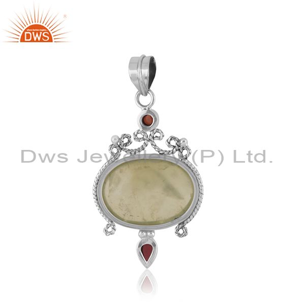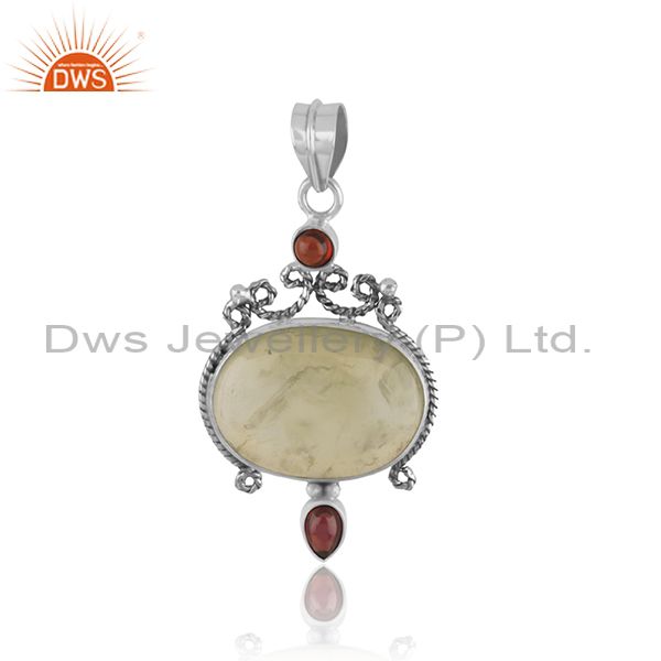 Garnet Prehnite Gemstone Oxidized Silver Pendant Jewelry