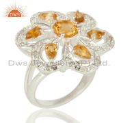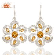 Genuine Citrine And White Topaz Sterling Silver Floral Design Pendant