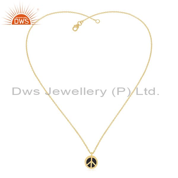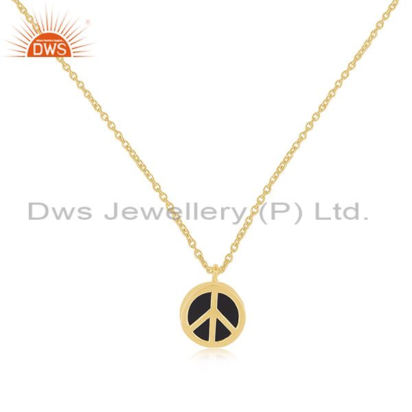 Genuine Sterling Silver Black Onyx Gemstone Peace Sign Pendant Wholesale India