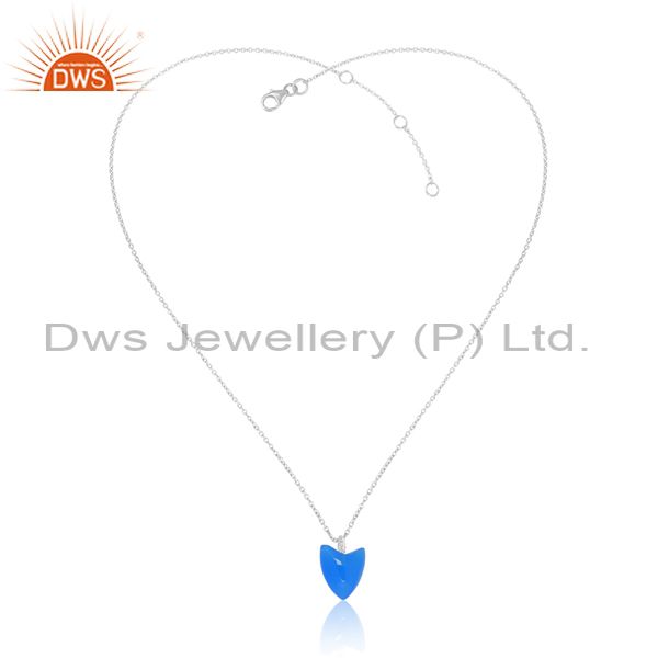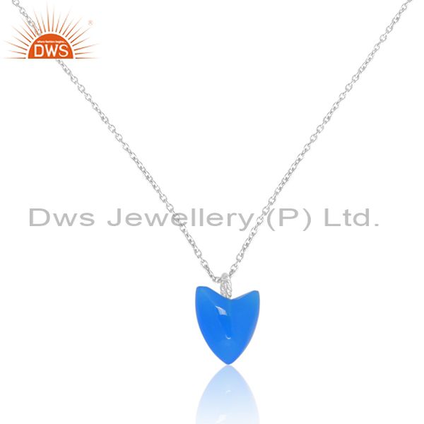 Glass Blue Chalcedony Arrow Pendant And Fine Silver Chain