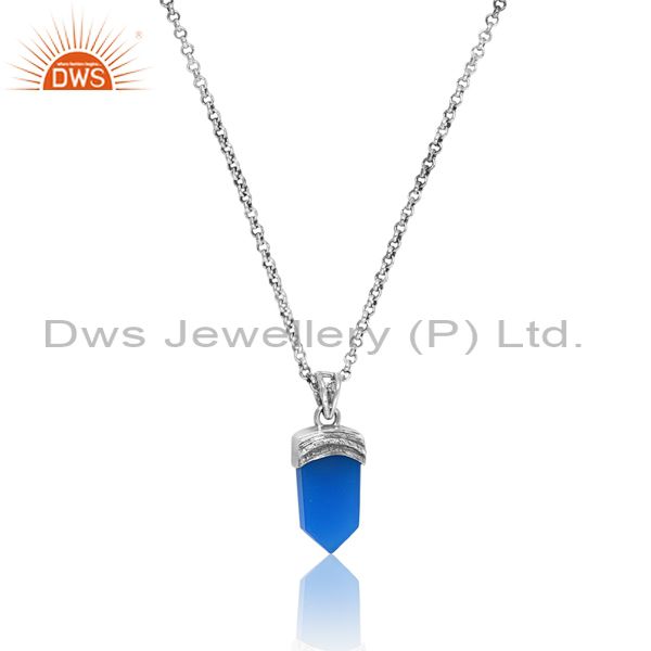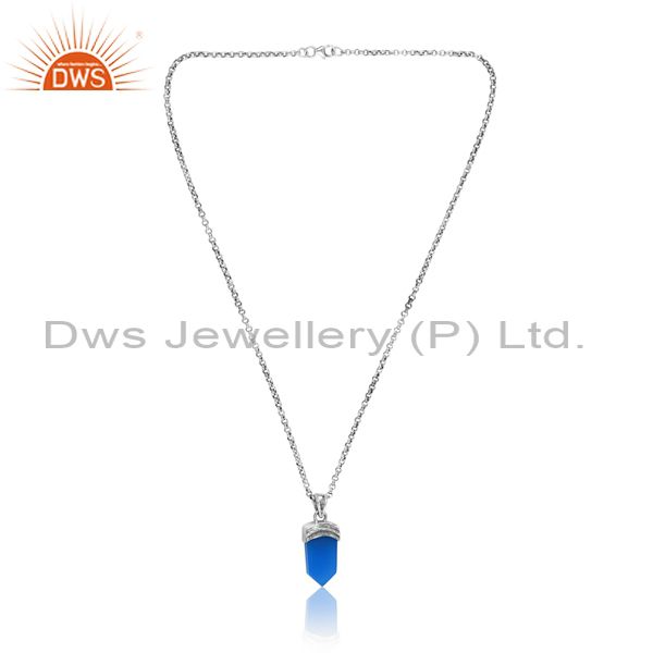 Glass Blue Chalcedony Set Pendant And Fine Silver Necklace