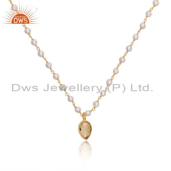 Gold On 925 Sterling Silver Citrine Set Pendant And Necklace