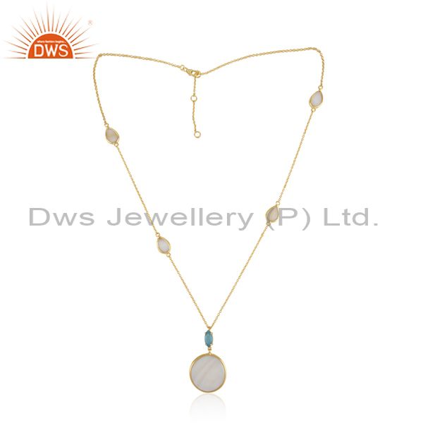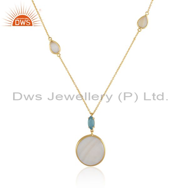 Gold On Silver Necklace With Mother Of Pearl Blue Chalcedony
