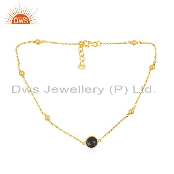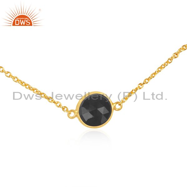 Gold Plated 925 Silver Black Onyx Gemstone Chain Necklace Wholesale Supplier