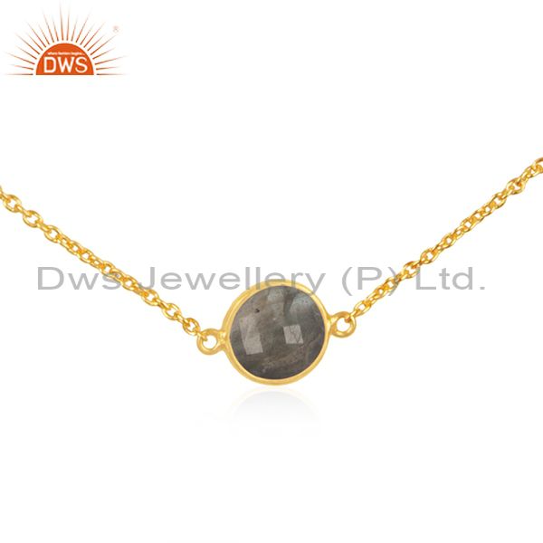 Gold Plated 925 Silver Chain Labradorite Gemstone Pendant Necklace Suppliers