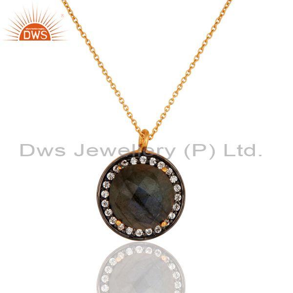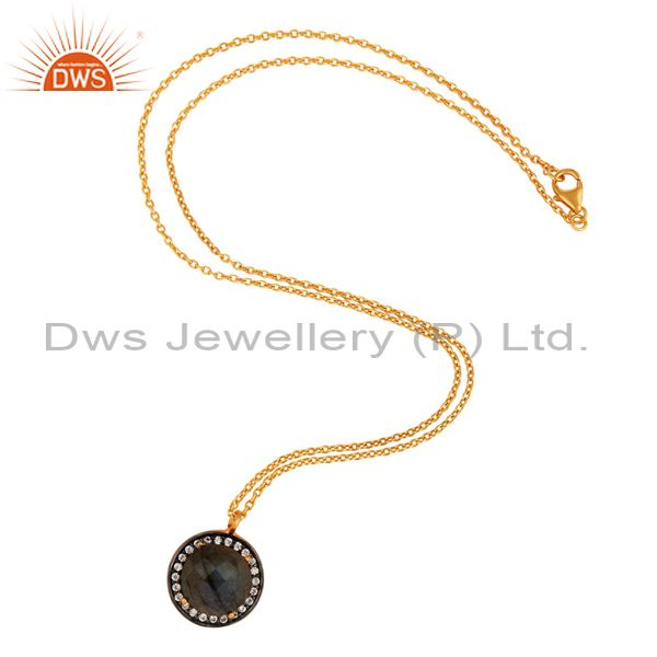Gold Plated 925 Sterling Silver Labradorite Gemstone Pendant With Chain 16" In
