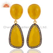 Gold Plated Prong Set Yellow Moonstone Sterling Silver Pendant Necklace