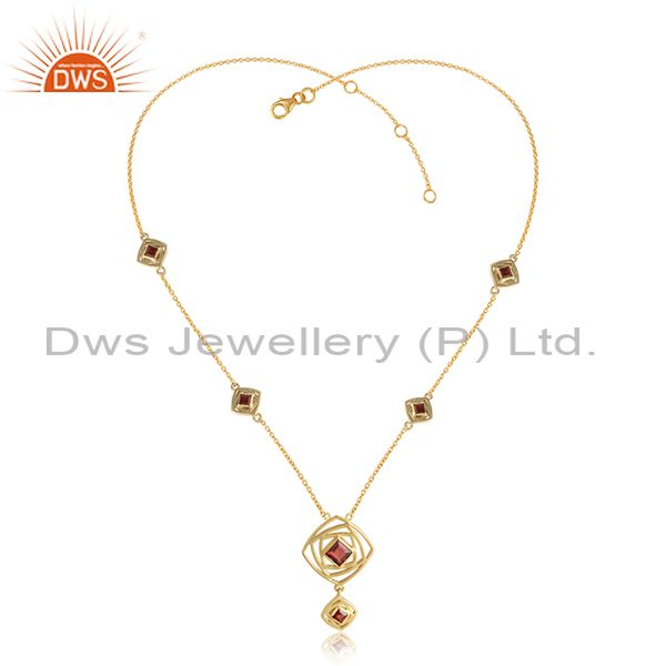 Gold Plated Silver Designer Garnet Gemstone Pendant Necklaces