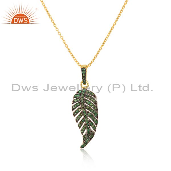 Gold Plated Sterling Silver Chain Pave Diamond Feather Design Pendant