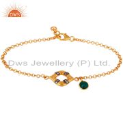 Gold Plated Sterling Silver Gemstone Designer Pendant With Green Onyx & Zircon