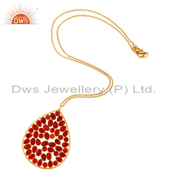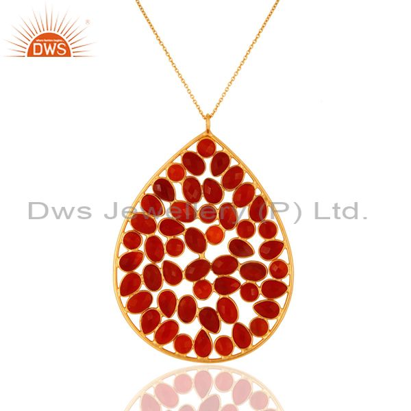 Gold Plated Sterling Silver Red Onyx Gemstone Elegant Pendant With 16" Necklace