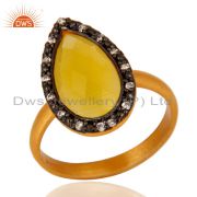Gold Plated Sterling Silver Yellow Moonstone & Cz Designer Drop Pendant Necklace