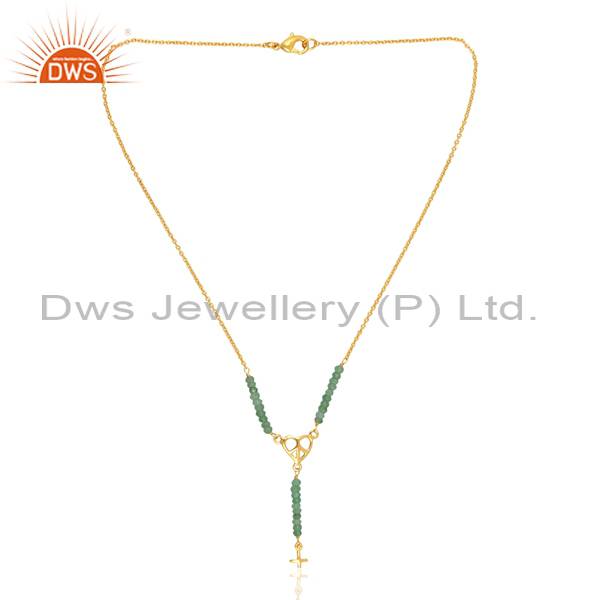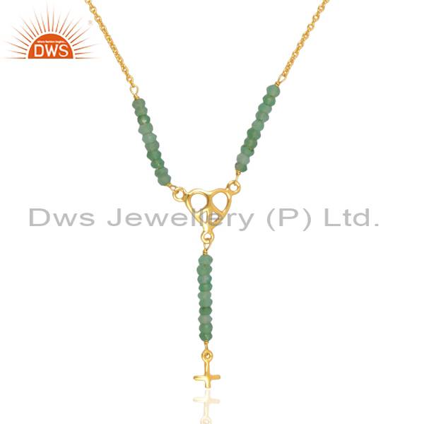 Gold Plated Trendy Necklace With Faceted Round Chrysoprase