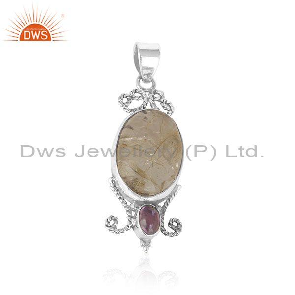Golden Rutile and Amethyst Gemstone Custom Silver Pendant Manufacturer