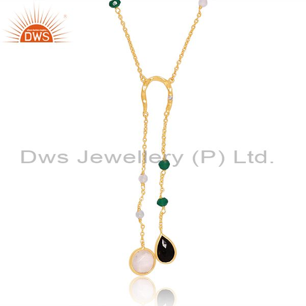 Gorgeous Double Drop Chain And Pendant With Many Gemstone