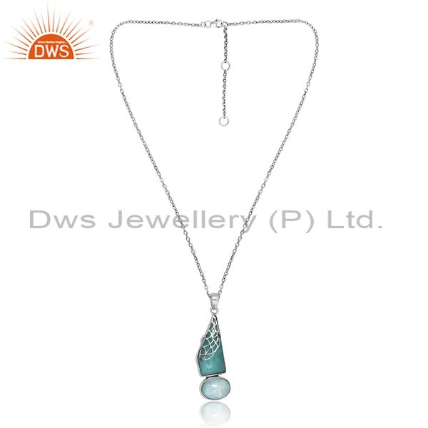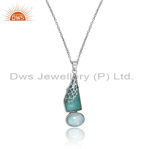 Gorgeous Silver Necklace With Amazonite Pendant Stone Women