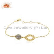 Gray Moonstone Gemstone New Look Gold Plated Silver Chain Necklace