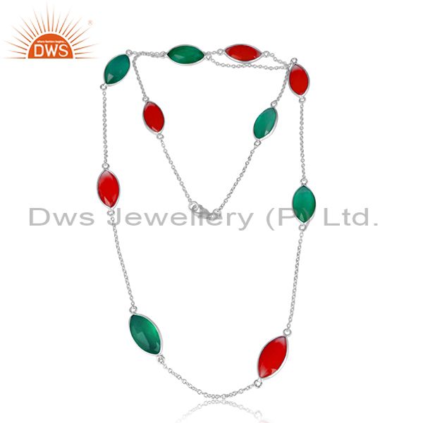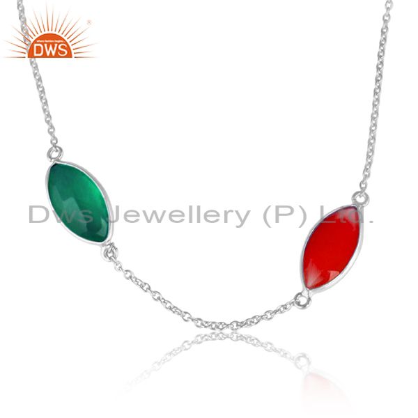 Green And Red Onyx Gemstone 925 Sterling Fine Silver Necklace
