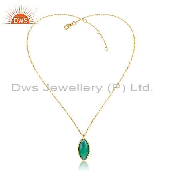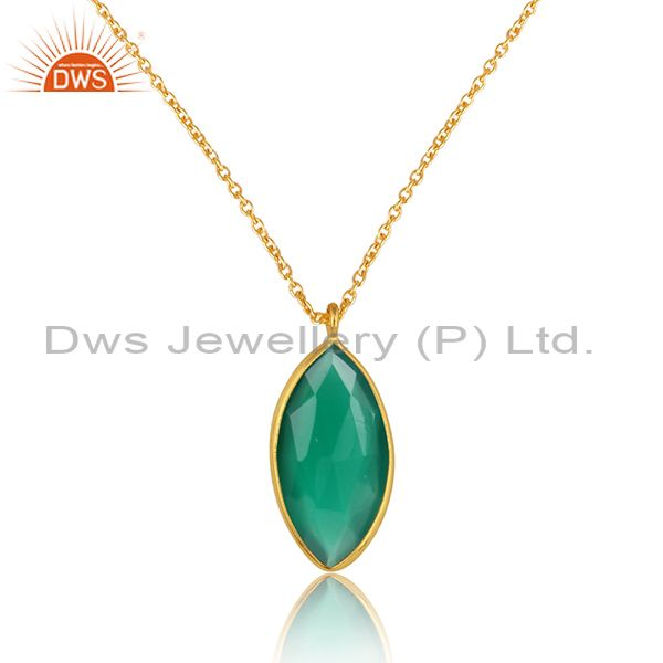 Green Onyx Gemstone 18K Gold Plated Designer Silver Chain Pendant