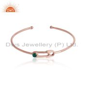 Green Onyx Gemstone Safety Pin Rose Gold Plated Silver Necklace