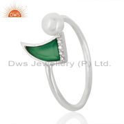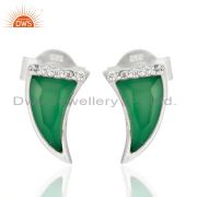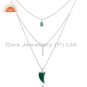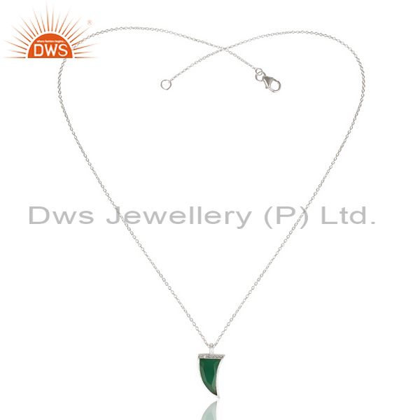 Green Onyx Horn Cz Studded Chain 92.5 Sterling Silver Pendent,Trendy Jewelry