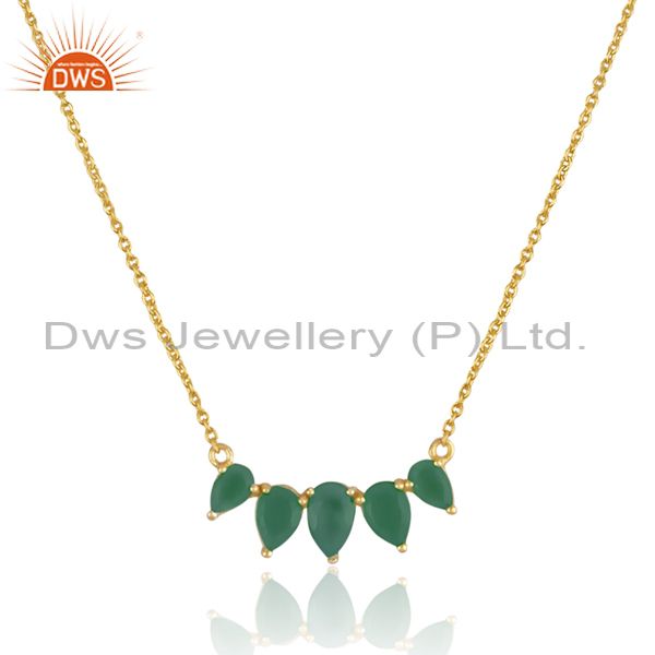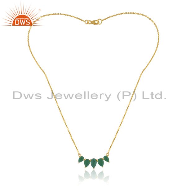 Green Onyx Set Classic Gold On 925 Silver Pendant And Chain