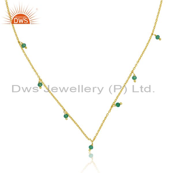 Green Onyx Set Gold On 925 Sterling Silver Designer Necklace