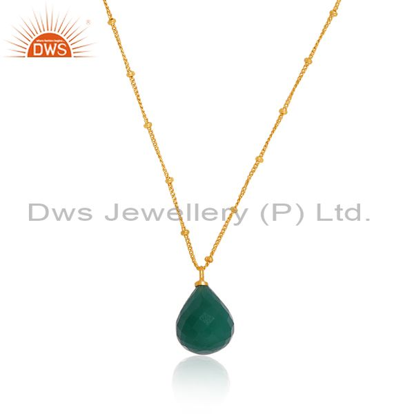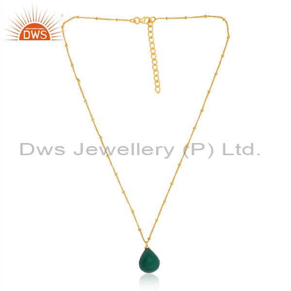 Green Onyx Set Gold On 925 Sterling Silver Pendant And Chain
