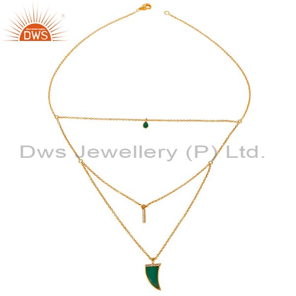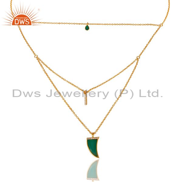 Green Onyx Triple Layer Unisex Cz Gold Plated Sterling Silver Pendent