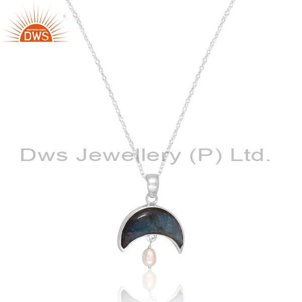 Half Moon With Drop Pendant And Chain Pearl And Briolette