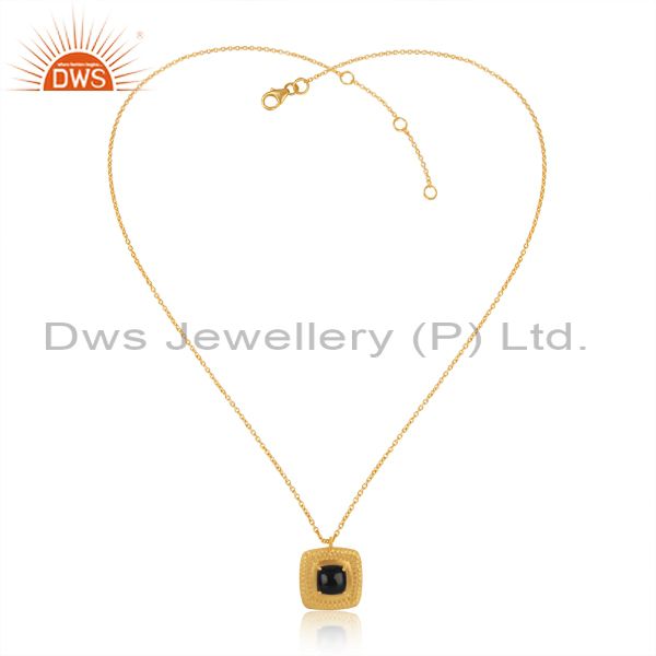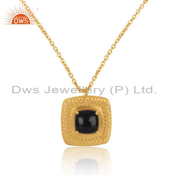 Hammer Bold Textured Gold on Silver Black Onyx Chain Pendant