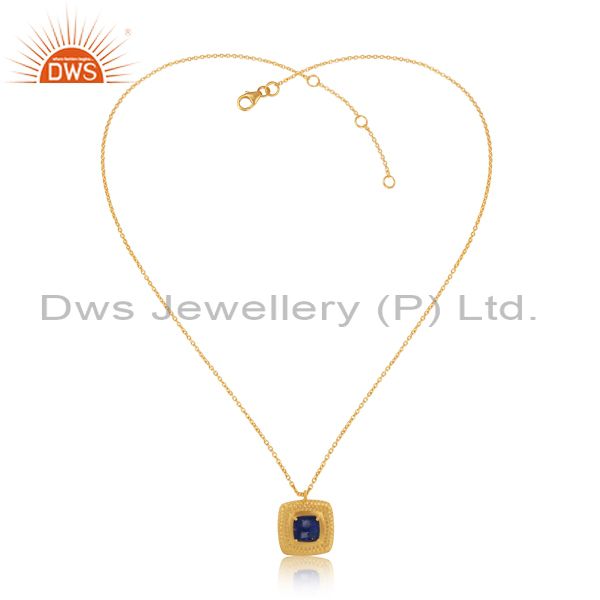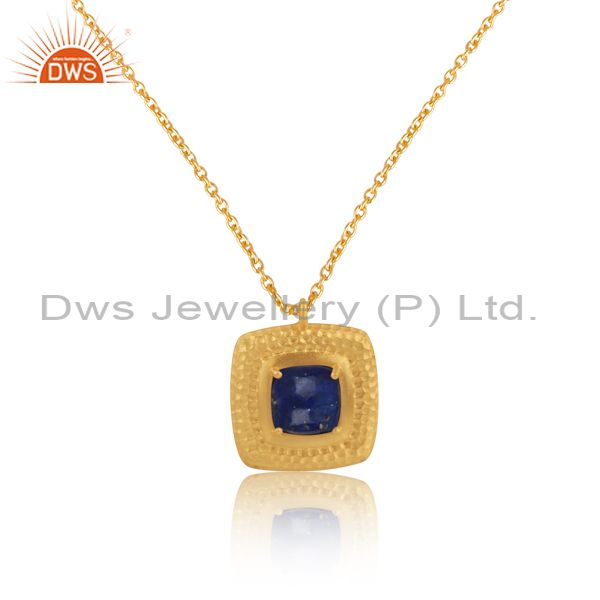 Hammer Bold Textured Gold on Silver Lapis Chain Pendant
