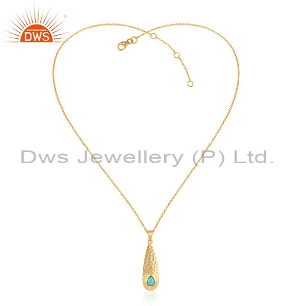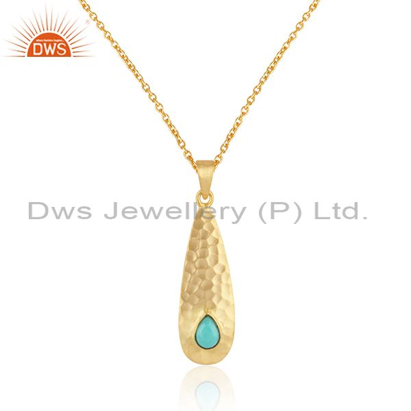 Hammered Designer Gold On Silver Necklace With Arizoan Turquoise