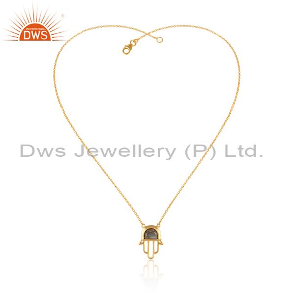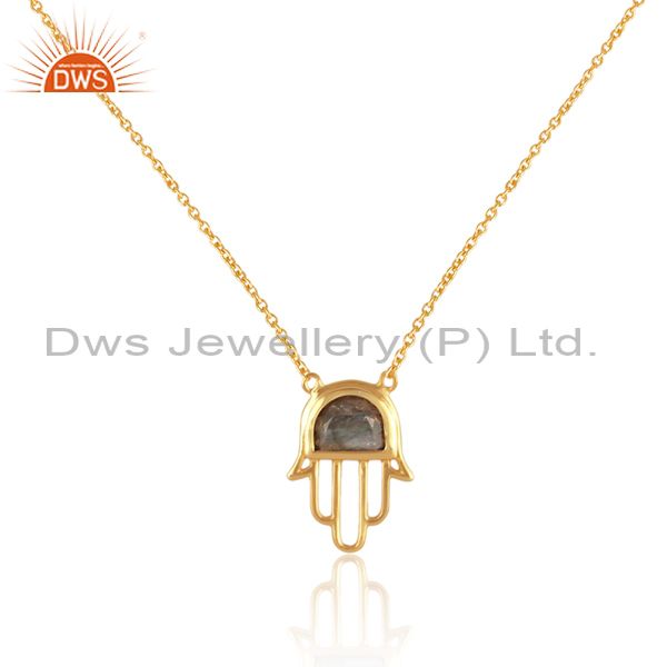 Hamsa Hand Gold Plated 925 Silver Labradorite Gmestone Pendant Manufacturer