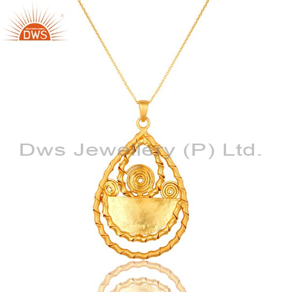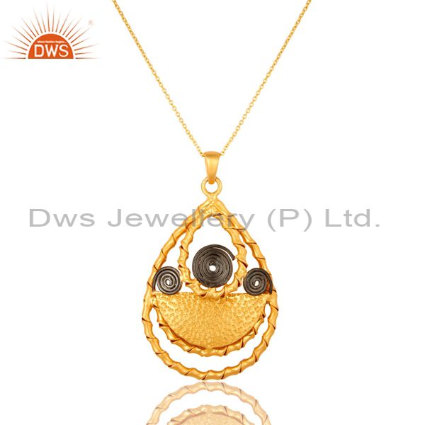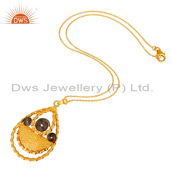 Hand Crafted Sterling Silver Matte Finish Gold Plated Hammered Pendant 16" Inch