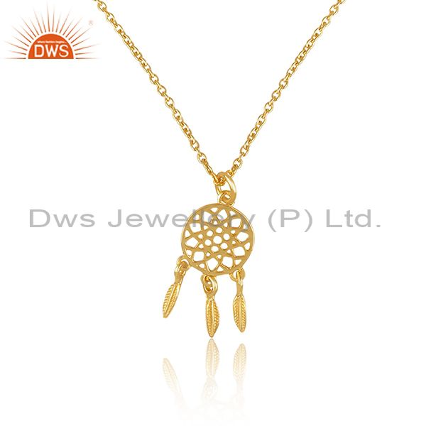 Handcrafted 925 Silver Gold Plated Indian Traditional Style Pendant Jewelry