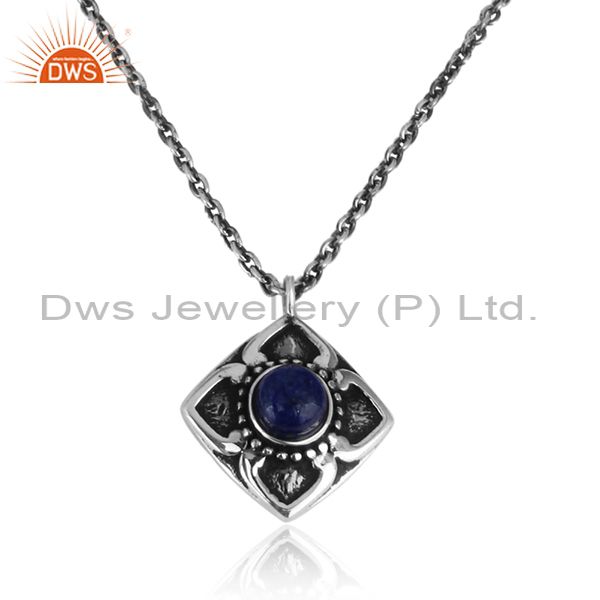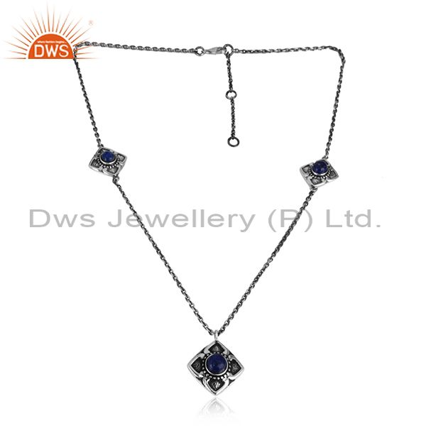 Handcrafted Classic Designer Lapis Necklace in Oxidized Silver