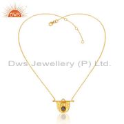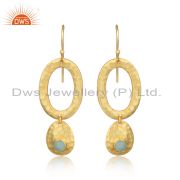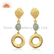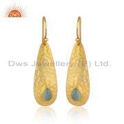 Handcrafted Hammered Gold On Silver Aqua Chlacedony Necklace