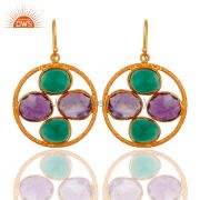 Handmade 18K Gold Over Sterling Silver Green Onyx & Amethyst Gemstone Pendant