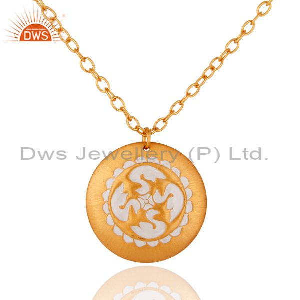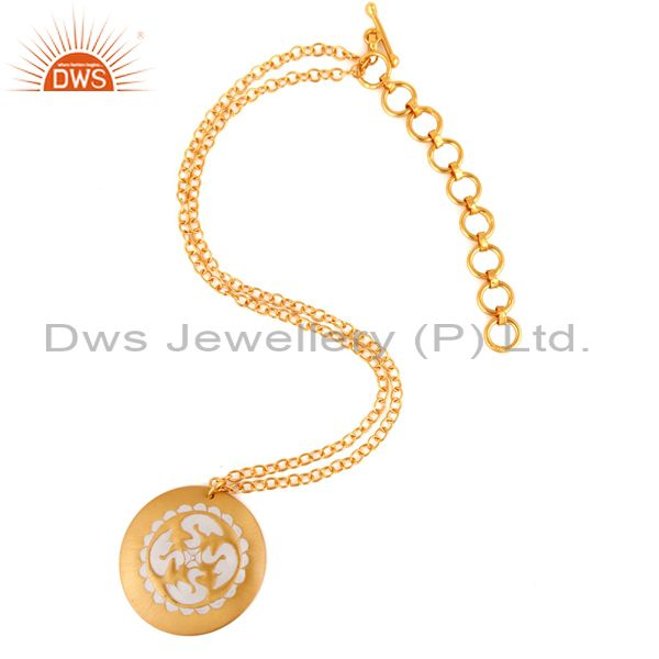 Handmade 22K Yellow Gold Plated Latest Fashion Designer White Enamel Pendant